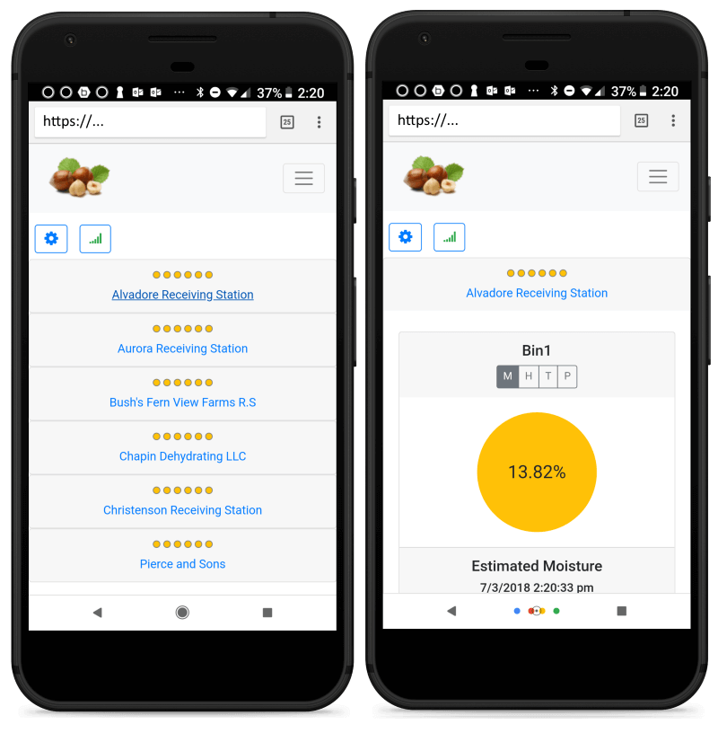 Цель приложения состоит в том, чтобы сделать так, чтобы люди, работающие на сушилках, могли легко узнать, когда влажность орехов близка к оптимальному диапазону влажности, при этом уменьшая потребность в отборе проб. В конечном итоге мы хотели бы получить до такой степени, что им не нужно так часто проверять орехи".