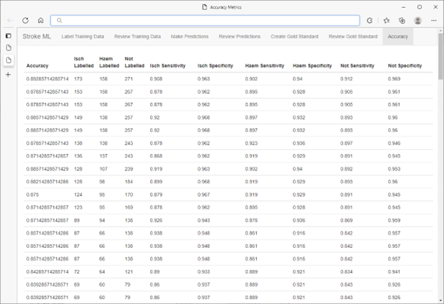 После завершения цикла "обучение, оценка, метка" в базе данных SQL Server с помощью генератора случайных чисел SQL Server выбирается набор прогнозных данных для проверки. Эти точки данных были предварительно классифицированы группой специалистов-медиков, не знающих о прогнозах модели.